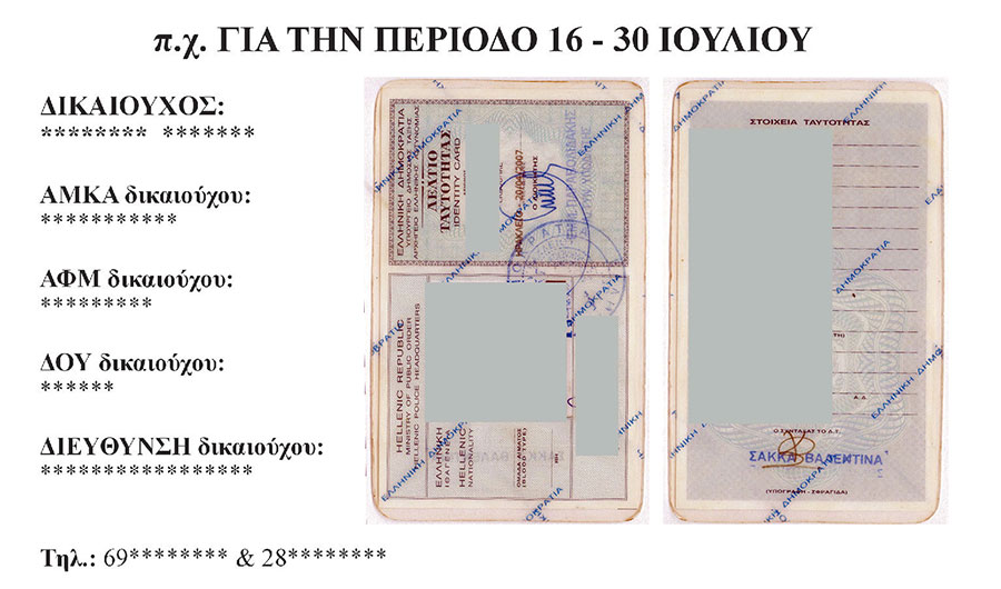 Μια φωτοτυπία της ταυτότητας του δικαιούχου στον ΟΑΕΔ και πάνω να αναγράφεται το ΑΦΜ το ΑΜΚΑ και τη διεύθυνση του δικαιούχου ευκρινώς